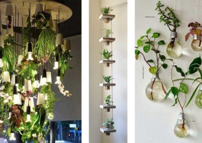 Une autre idée très originale d’accrochage des plantes est celle qui est placée sur des assiettes lumineuses. Cette idée est également parfaite pour le salon ou pour les balcons. Vous pouvez placer plusieurs pots de ce type de manière échelonnée. Les plantes que vous devez placer par-dessus doivent être artificielles, mais elles introduisent encore beaucoup de couleurs et donnent beaucoup de vie aux intérieurs blancs.